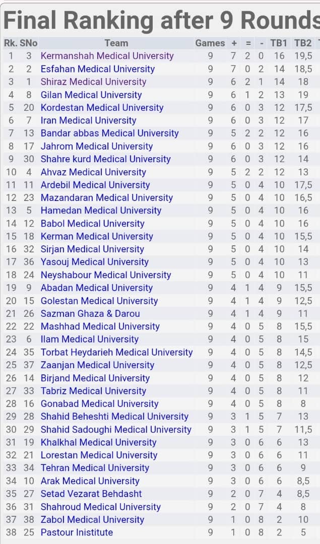 ‎تیم بانوان دانشگاه علوم پزشکی گیلان با کسب مقام سوم انفرادی و چهارم تیمی در رشته شطرنج، در المپیاد ورزشی کارکنان وزارت بهداشت خوش درخشید.